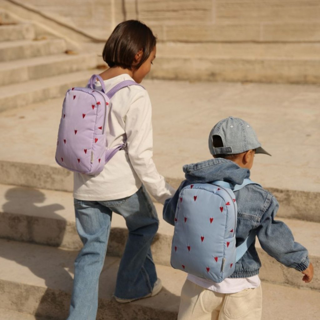 Tato kolekce vyniká jemně vyšitými květinami a malými srdíčky uprostřed, které dodávají každému kousku sladký a hravý nádech. Mini batoh je lehký, odolný a vybavený nastavitelnými popruhy, takže roste spolu s dítětem. Je vhodný pro děti od 0 do 5 let a pojme oblíbené hračky, svačinu i malé poklady.