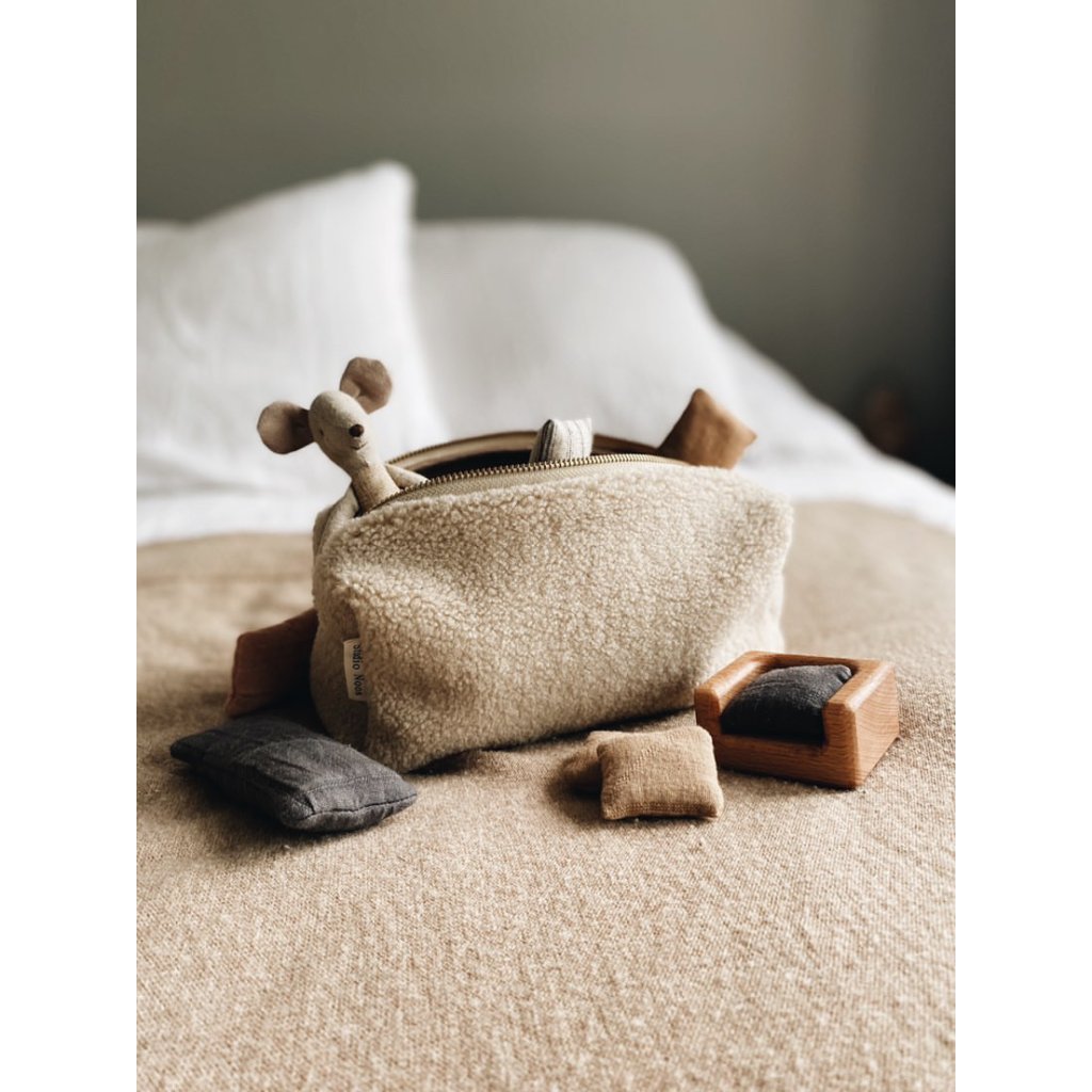 Ručně vyrobena v Evropě, s certifikací Oeko-Tex. Měkkou "teddy" taštičku využijete mnoha způsoby - jako toaletní, nebo v ní ukryjete všechny potřebné drobnosti, které nosíte v kabelce. Originální a nepřehlédnutelné multifunkčí pouzdro, které skvěle ladí s taškami Teddy. Pouzdro je dostatečně velké na uložení náhradní plenky a dalších potřeb pro miminka nebo skvěle poslouží jako kosmetická taštička. Rozměry: 9 x 24 x 9 cm Materiál: 100% polyester, certifikace Oeko-Tex praní: prát na stupeň 30, jemný program, nedávat do sušičky.