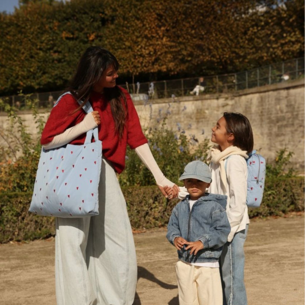 STUDIO NOOS Taška mom bag Puffy - Light Blue Hearts