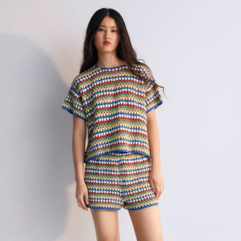 THE NEW SOCIETY Dámský háčkovaný top Serifos - Multicolor