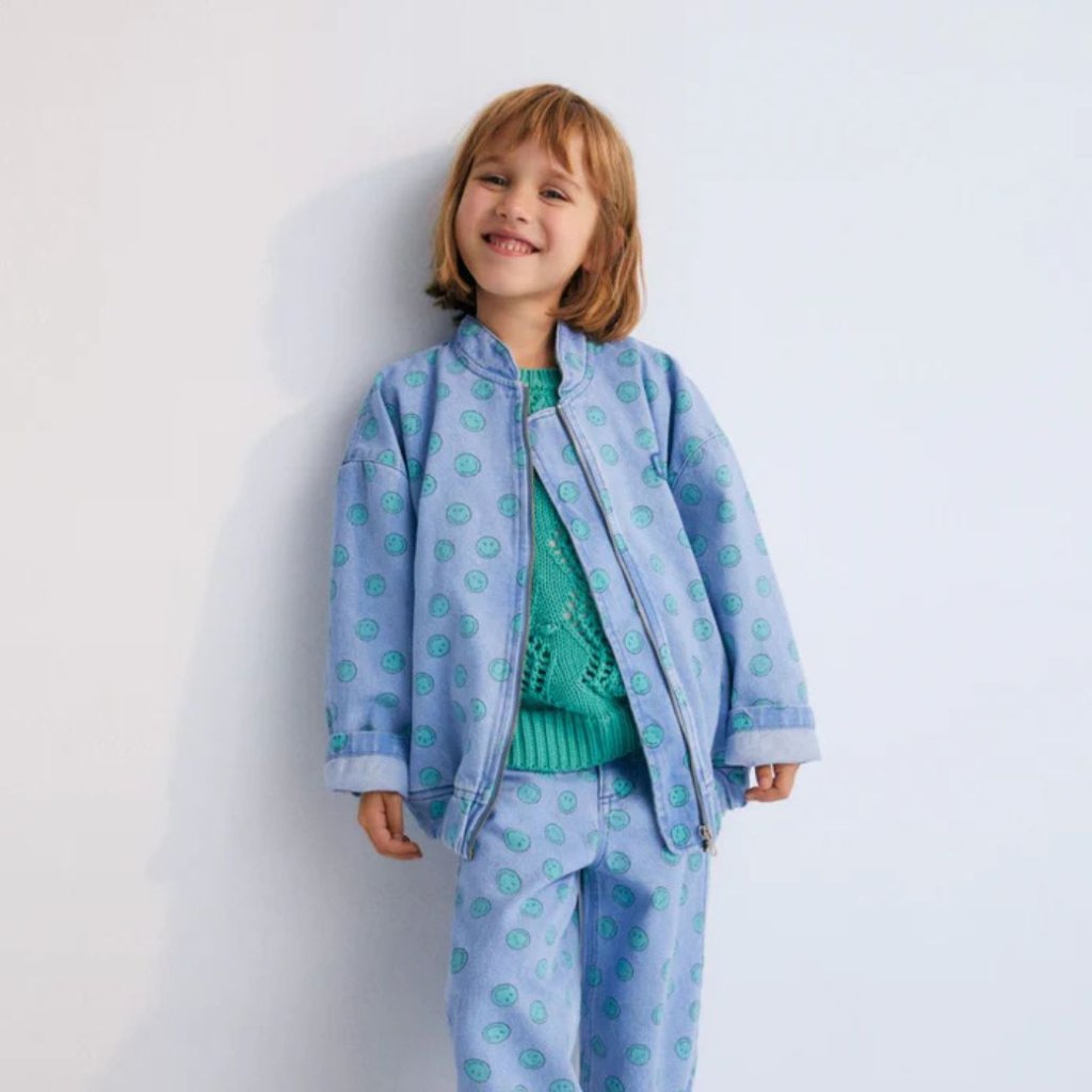 Tato bunda má praktické boční kapsy a kombinuje styl a pohodlí. Smajlíky jsou pečlivě natištěny na džínovinu a každý kus je jedinečný.
