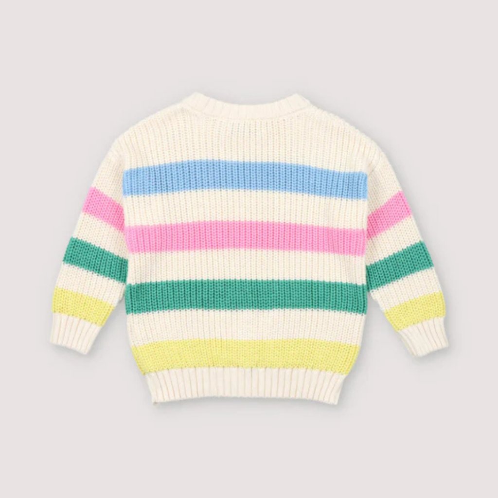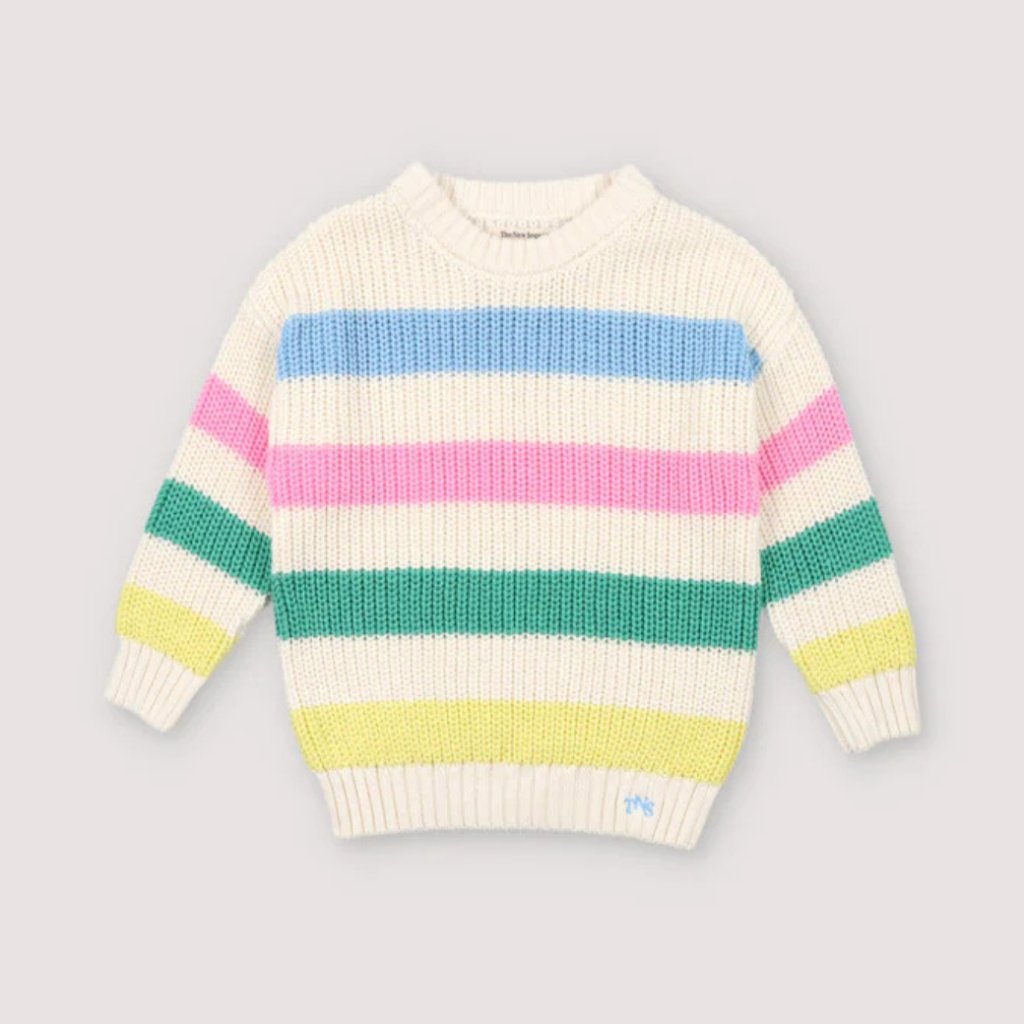 Svetr Leto od značky The New Society patří mezi nejoblíbenější kousky díky svěží kombinaci jasných barevných pruhů a měkkého žebrovaného úpletu. Žebrovaný výstřih, manžety a spodní lem zajišťují maximální pohodlí i styl. Tento univerzální svetr se snadno zkombinuje s dalšími modely z kolekce a stane se nezbytnou součástí každého šatníku.