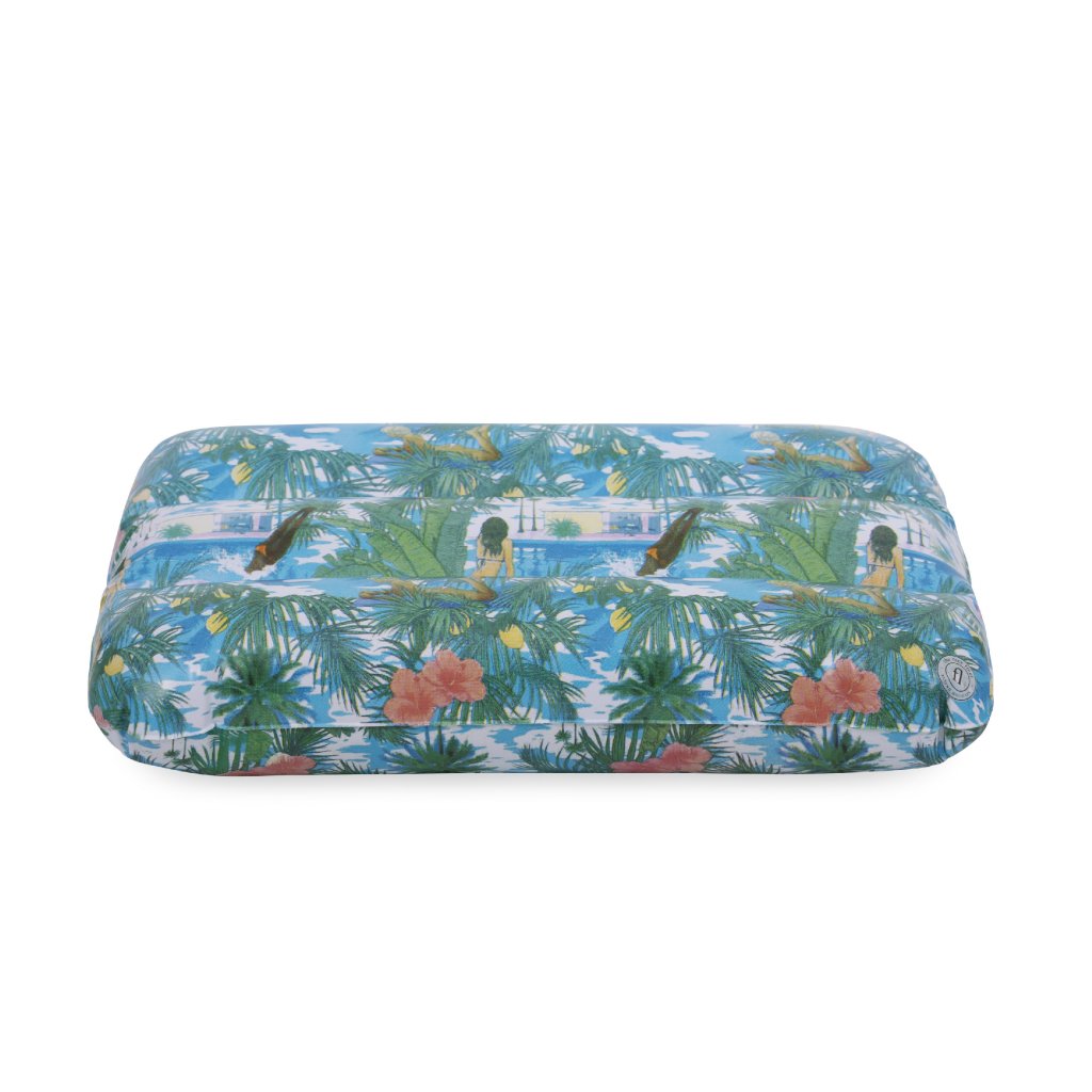 Praktický polštářek na pláž. Jeho velikost je ideální pro lenošení a snadno se složí a ušetří místo v tašce. Tento polštář v akvarelových odstínech, vytištěný na přední a zadní straně s motivem Formentery, připomíná slunce a odstíny modré moře.
