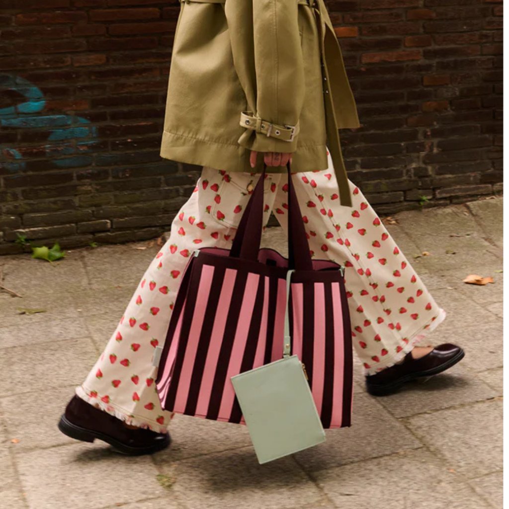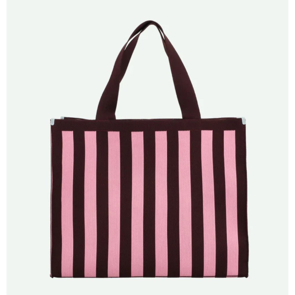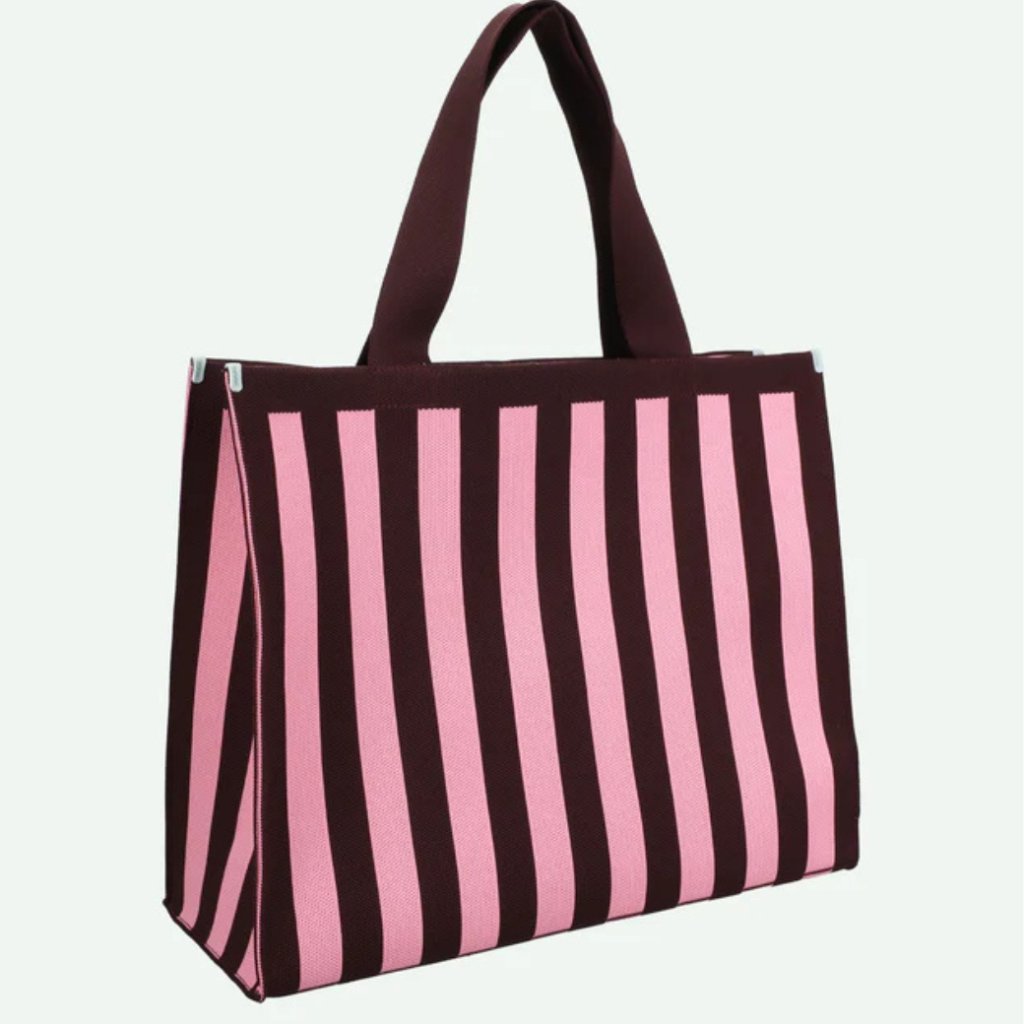 THE STICKY SIS CLUB Taška Shopper Knitted stripes - chocolate + bubblegum