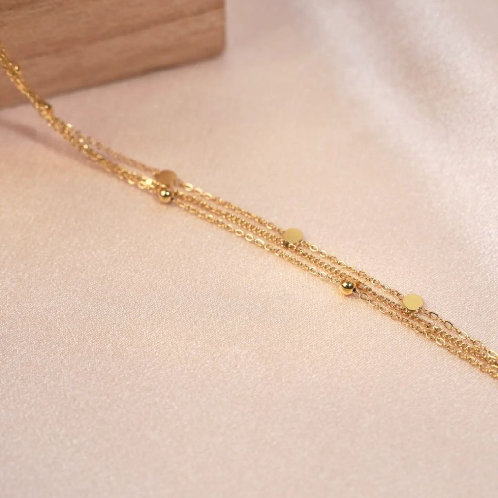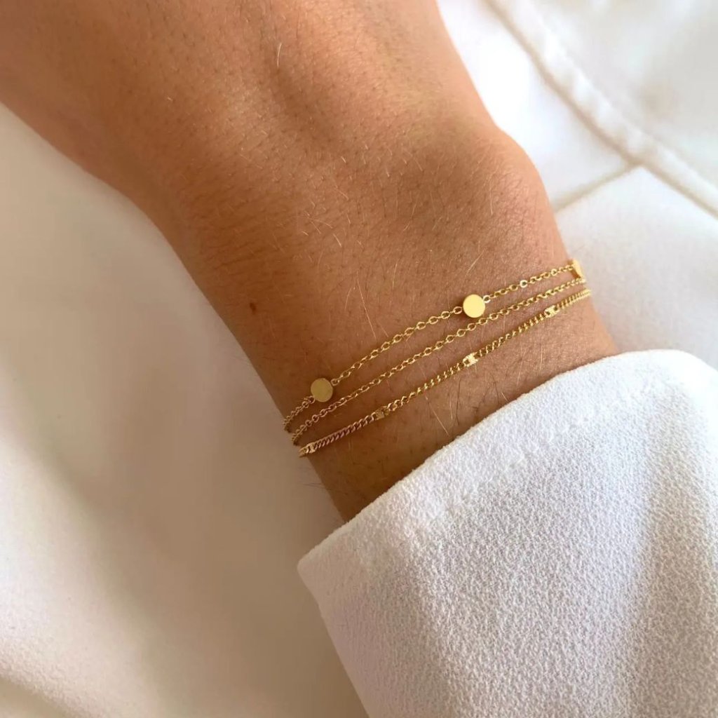 Elegantní náramek tvořený třemi jemnými řetízky z nerezové oceli. Díky 3cm prodlužovacímu řetízku se snadno přizpůsobí velikosti zápěstí. Skvěle se kombinuje s dalšími jemnými zlatými náramky a je ideální i jako dárek.