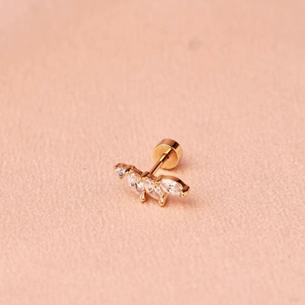 Elegantní piercing z nerezové oceli osazený zirkonovými kamínky, který jemně rozzáří váš vzhled. Moderní a minimalistický kousek, prodává se jednotlivě.