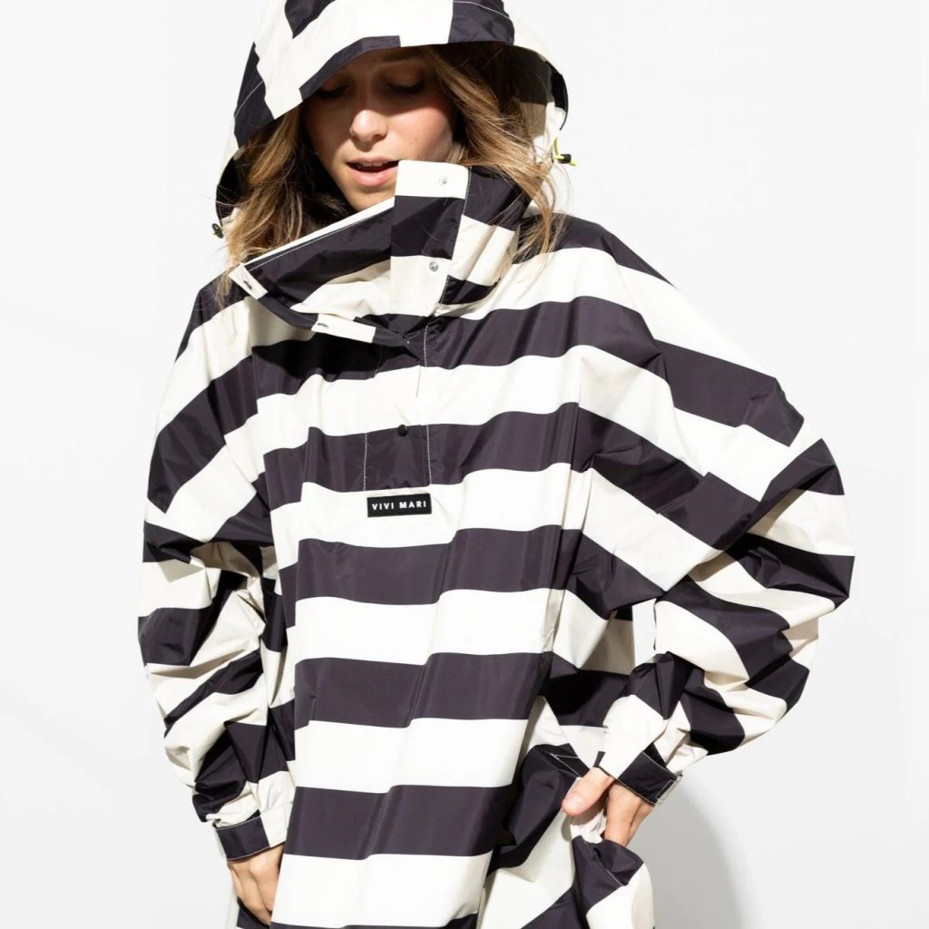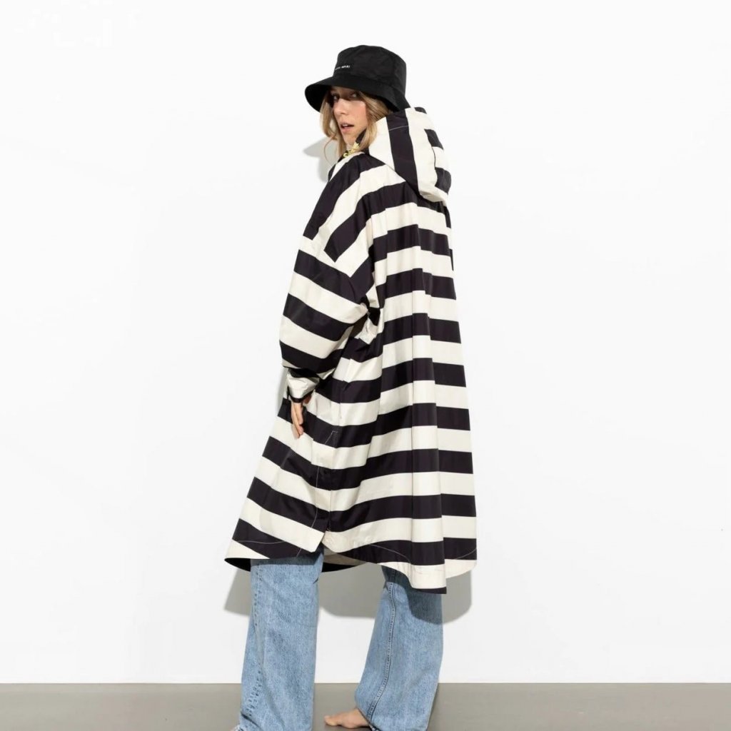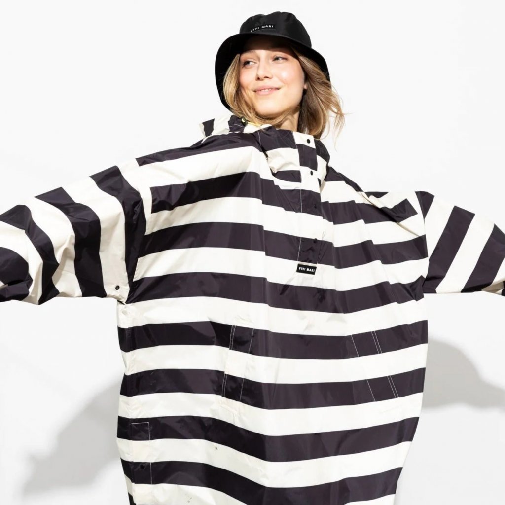 Využijte deštivé dny na maximum s městskou pláštěnkou v oversized střihu VIVI MARI. Elegantní pláštěnka je vyrobena z recyklovaných surovin a je voděodolná, snadno ji složíte do kapsy či tašky, a máte ji tak vždy po ruce. Pláštěnka je oversize a můžete ji flexibilně v zimě nosit jako nepromokavou vrstvu přes teplejší bundu. Pelerína ochrání před mokrem a lze ji v chladných dnech flexibilně nosit přes teplou zimní bundu