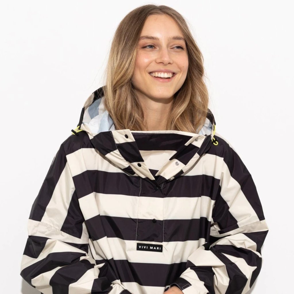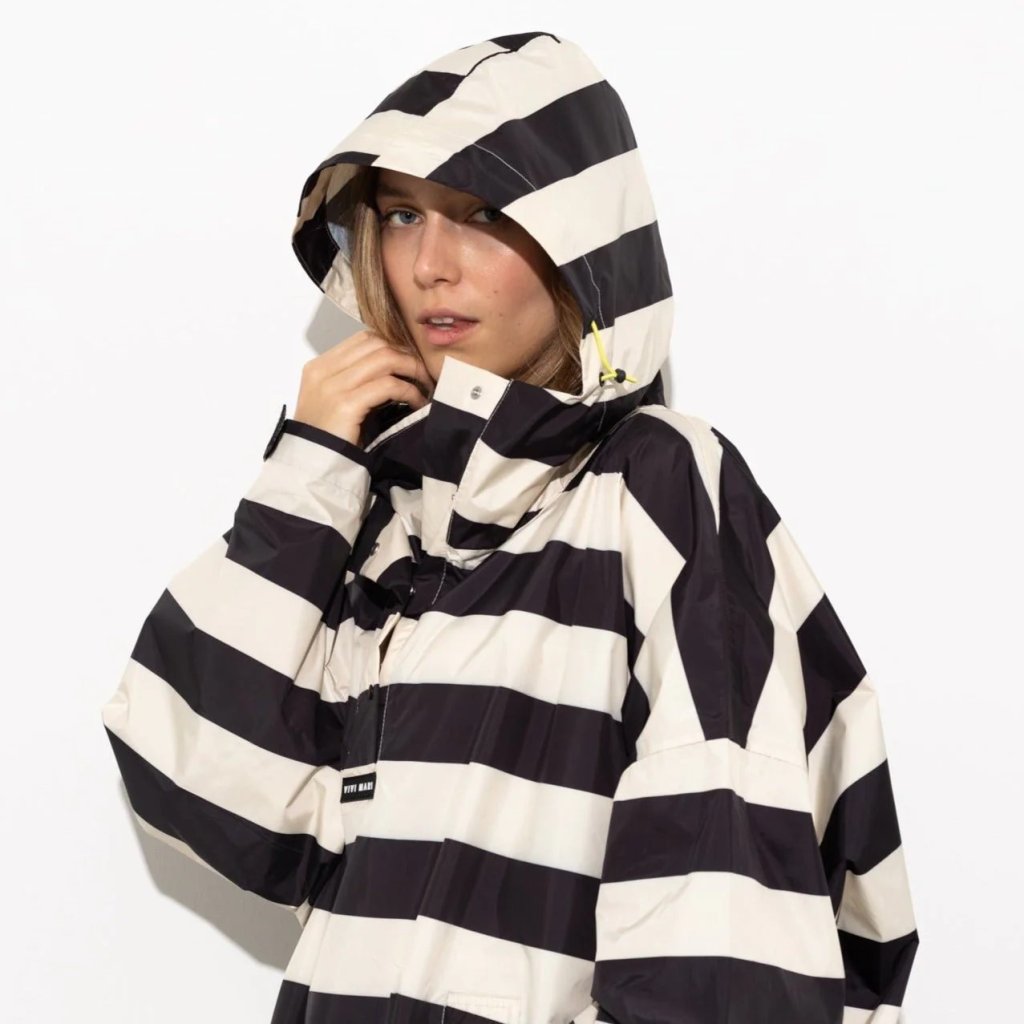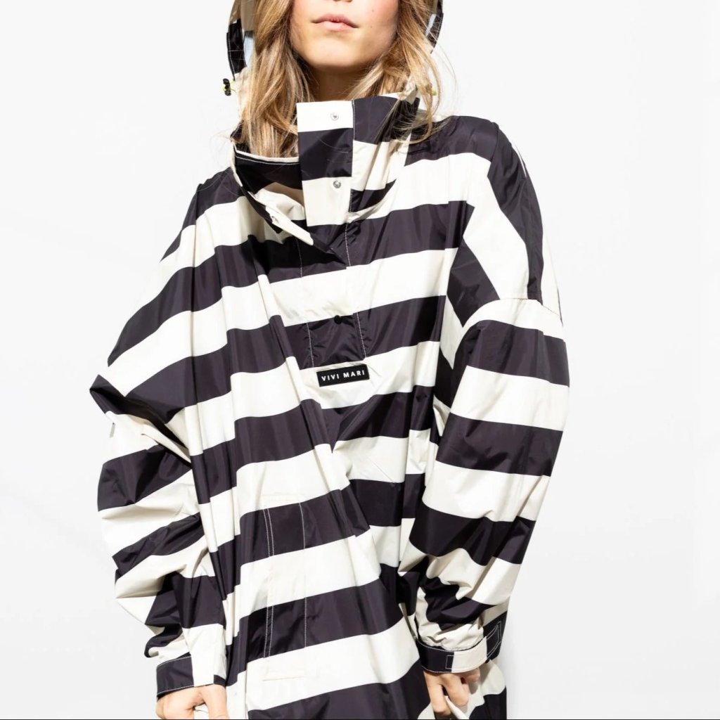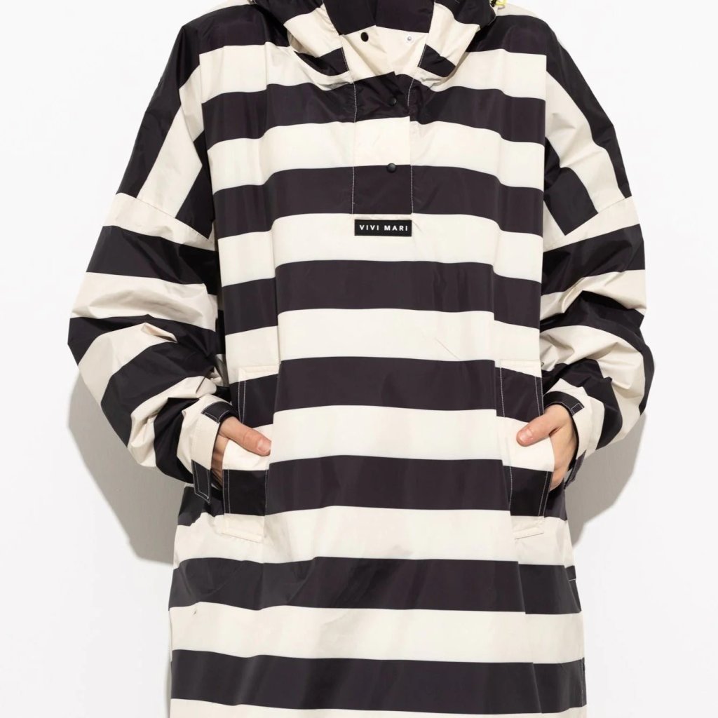 Využijte deštivé dny na maximum s městskou pláštěnkou v oversized střihu VIVI MARI. Elegantní pláštěnka je vyrobena z recyklovaných surovin a je voděodolná, snadno ji složíte do kapsy či tašky, a máte ji tak vždy po ruce. Pláštěnka je oversize a můžete ji flexibilně v zimě nosit jako nepromokavou vrstvu přes teplejší bundu. Pelerína ochrání před mokrem a lze ji v chladných dnech flexibilně nosit přes teplou zimní bundu