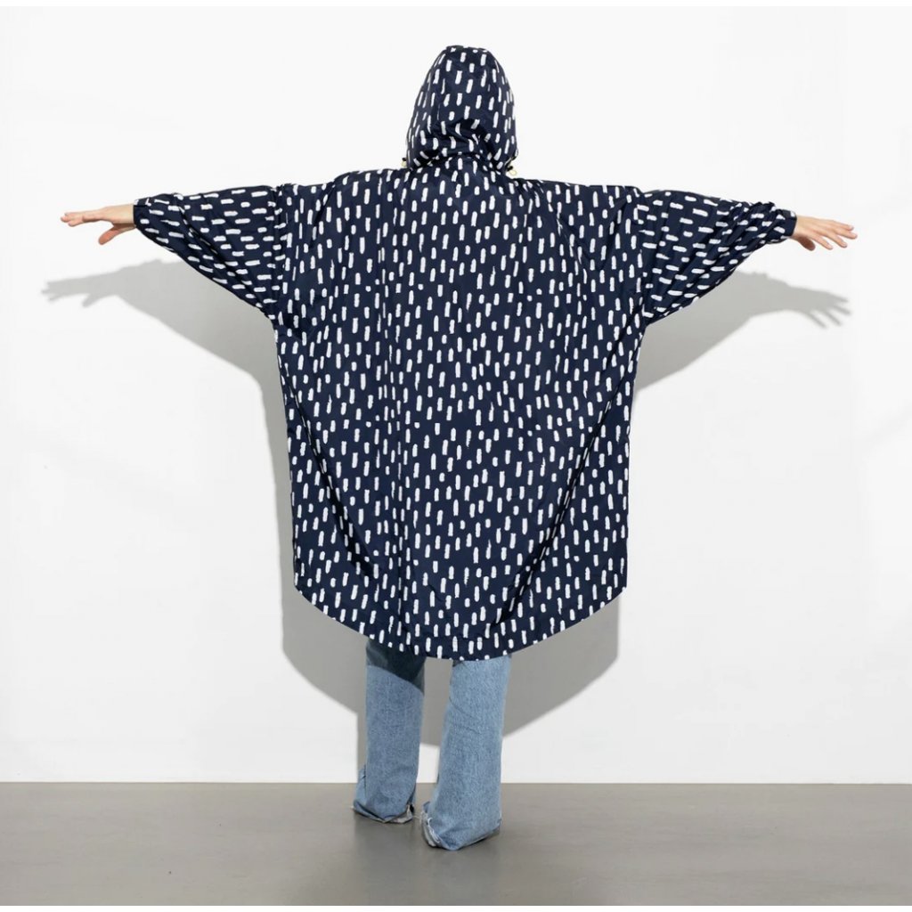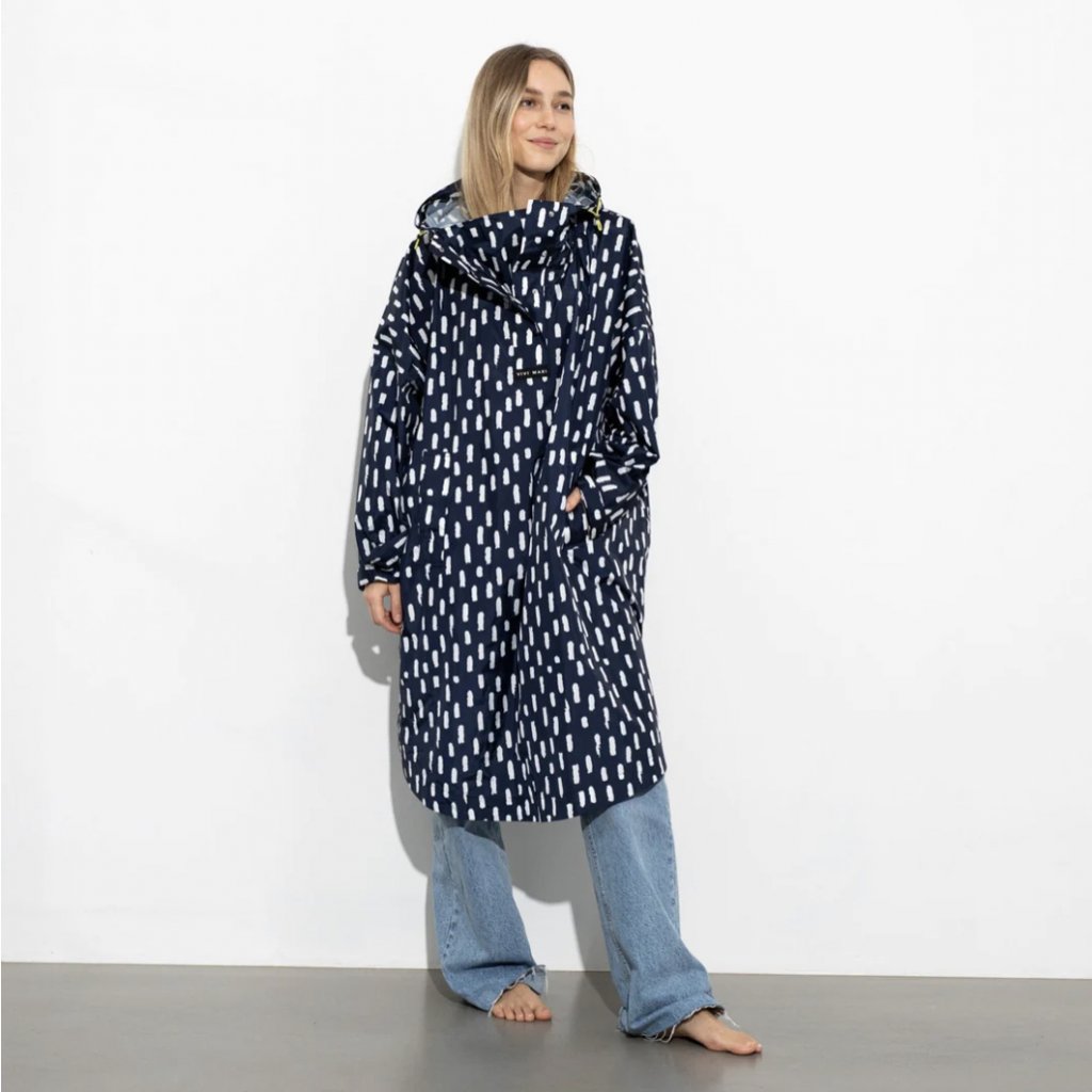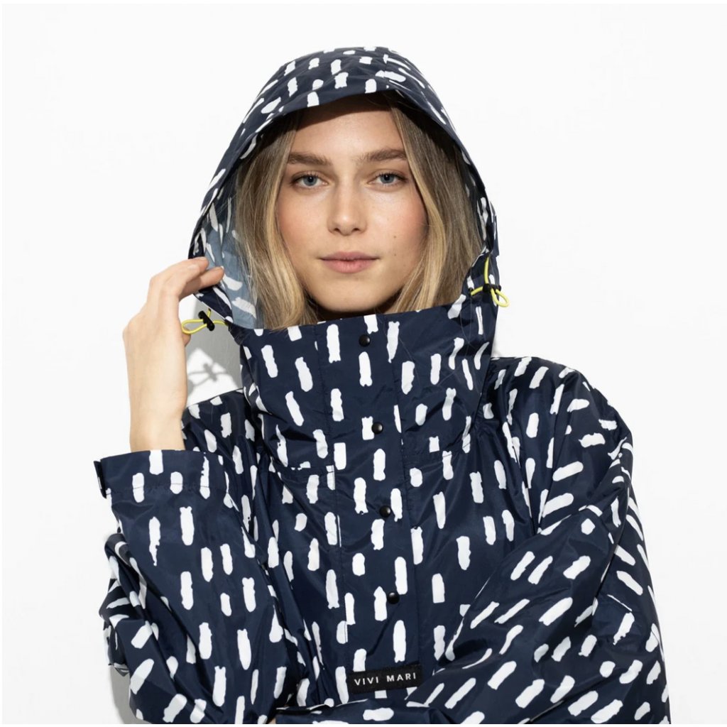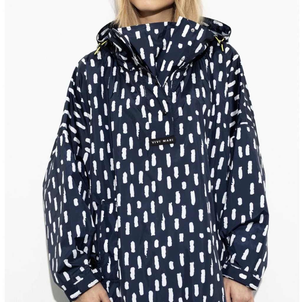 Využijte deštivé dny na maximum s městskou pláštěnkou v oversized střihu VIVI MARI. Elegantní pláštěnka je vyrobena z recyklovaných surovin a je voděodolná, snadno ji složíte do kapsy či tašky, a máte ji tak vždy po ruce. Pláštěnka je oversize a můžete ji flexibilně v zimě nosit jako nepromokavou vrstvu přes teplejší bundu. Pelerína ochrání před mokrem a lze ji v chladných dnech flexibilně nosit přes teplou zimní bundu