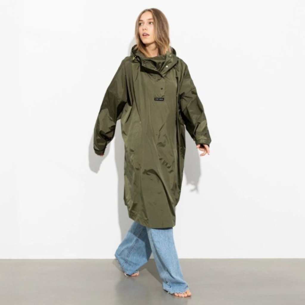 Využijte deštivé dny na maximum s městskou pláštěnkou v oversized střihu VIVI MARI. Elegantní pláštěnka je vyrobena z recyklovaných surovin a je voděodolná, snadno ji složíte do kapsy či tašky, a máte ji tak vždy po ruce. Pláštěnka je oversize a můžete ji flexibilně v zimě nosit jako nepromokavou vrstvu přes teplejší bundu. Pelerína ochrání před mokrem a lze ji v chladných dnech flexibilně nosit přes teplou zimní bundu