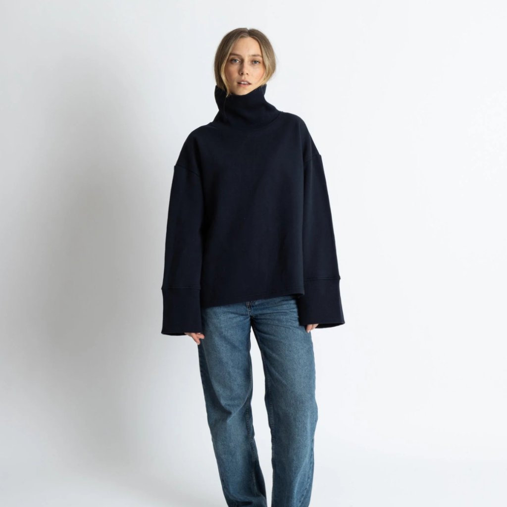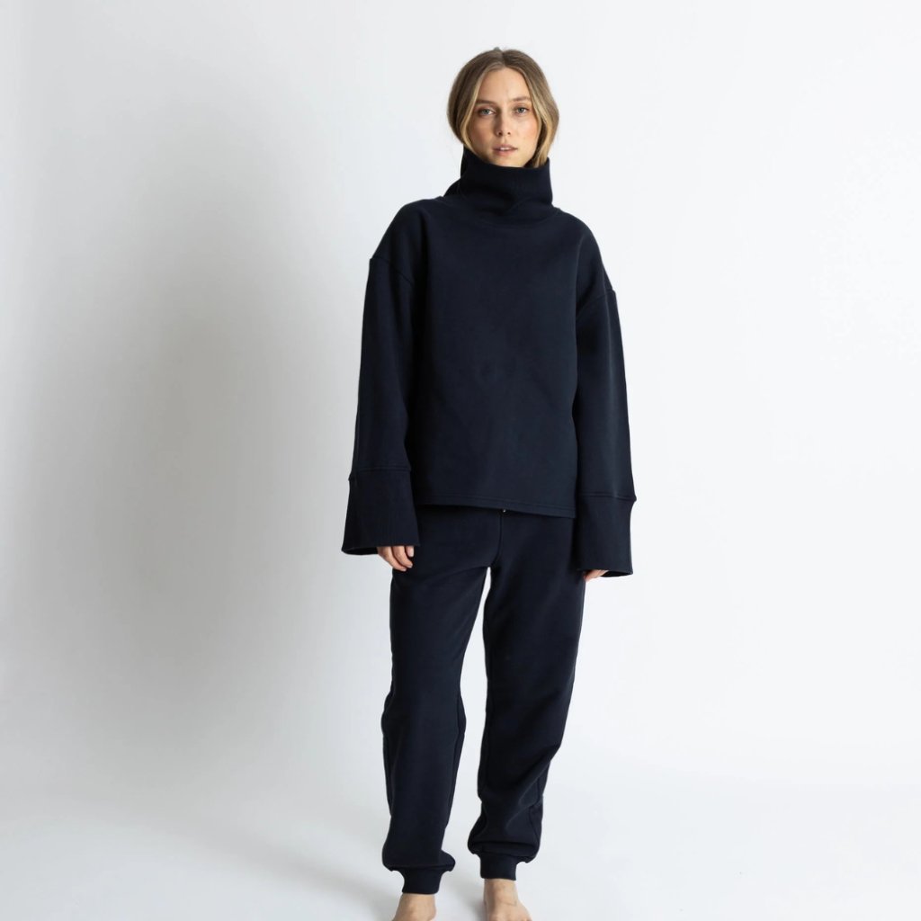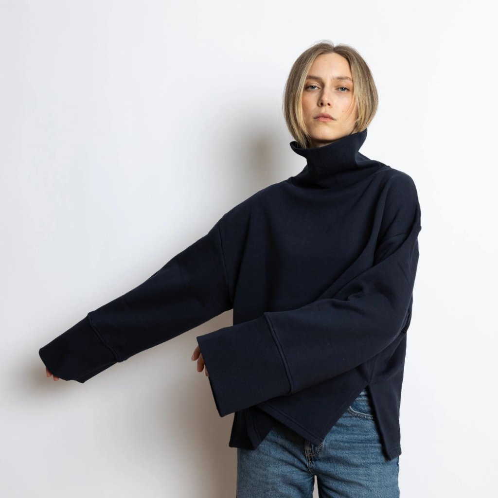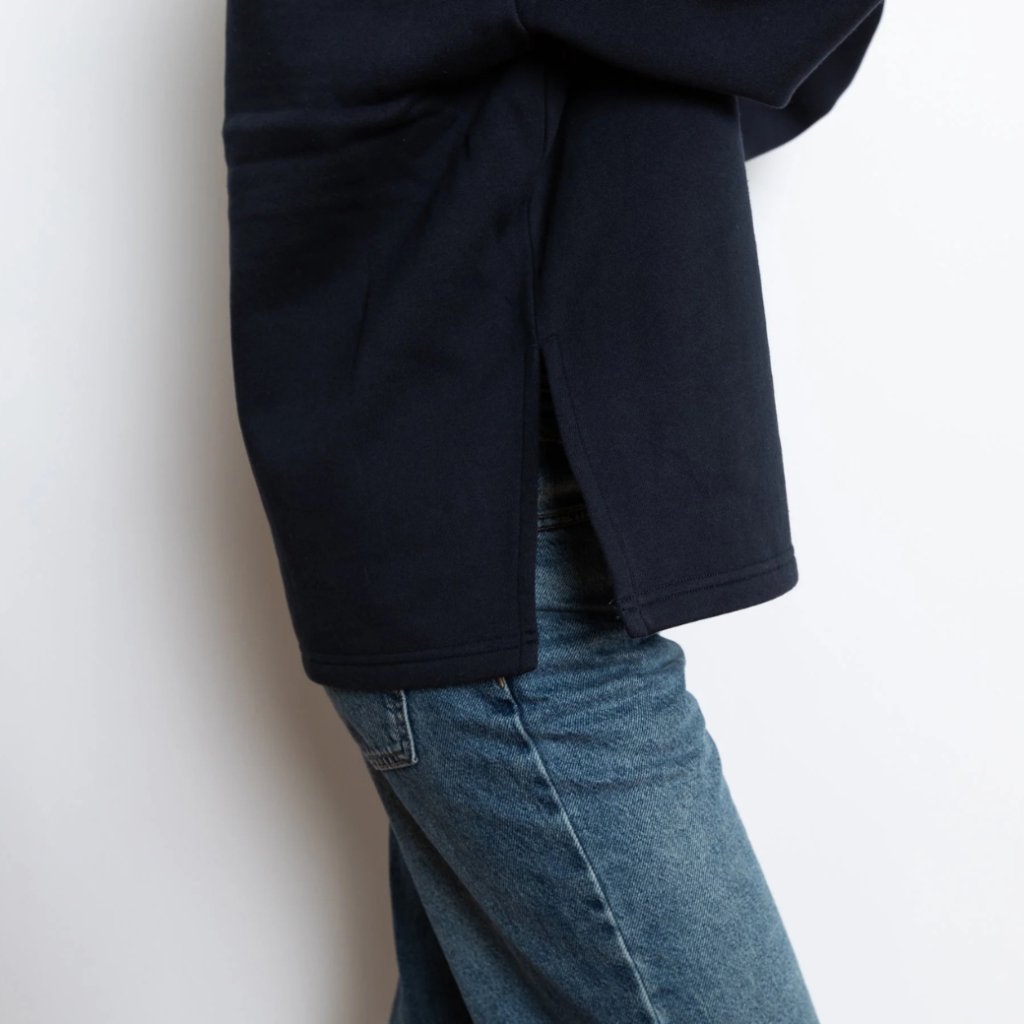 Tato mikina je vyrobena z prémiové 100% bavlny a nabízí maximální pohodlí díky měkké vnitřní úpravě – zahřeje v chladných dnech a poskytne příjemný pocit svěžesti, když je tepleji. Mikina má volný střih, široké rukávy a elegantní stojáček, který dodává sofistikovaný vzhled.