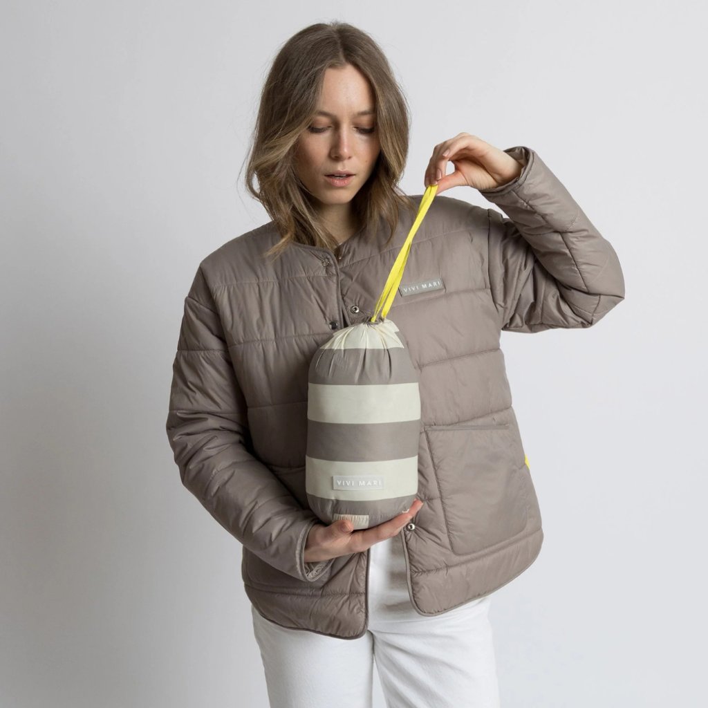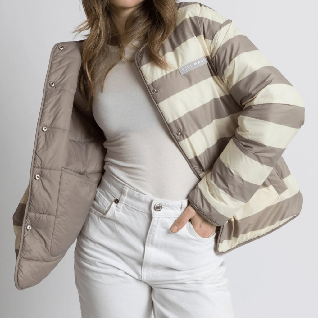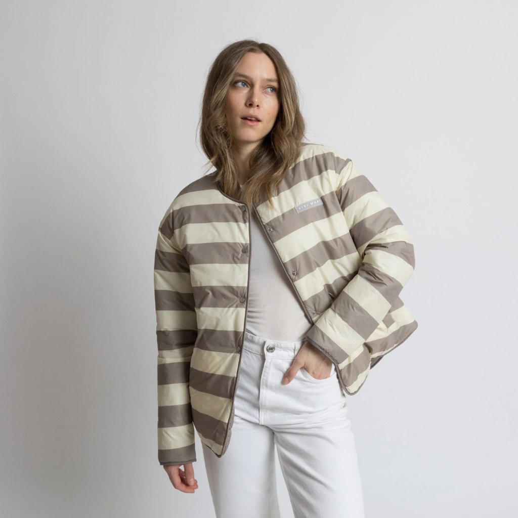 VIVI MARI Oboustranná bunda Ultra Light Puffer Jacket mushroom/bold stripes