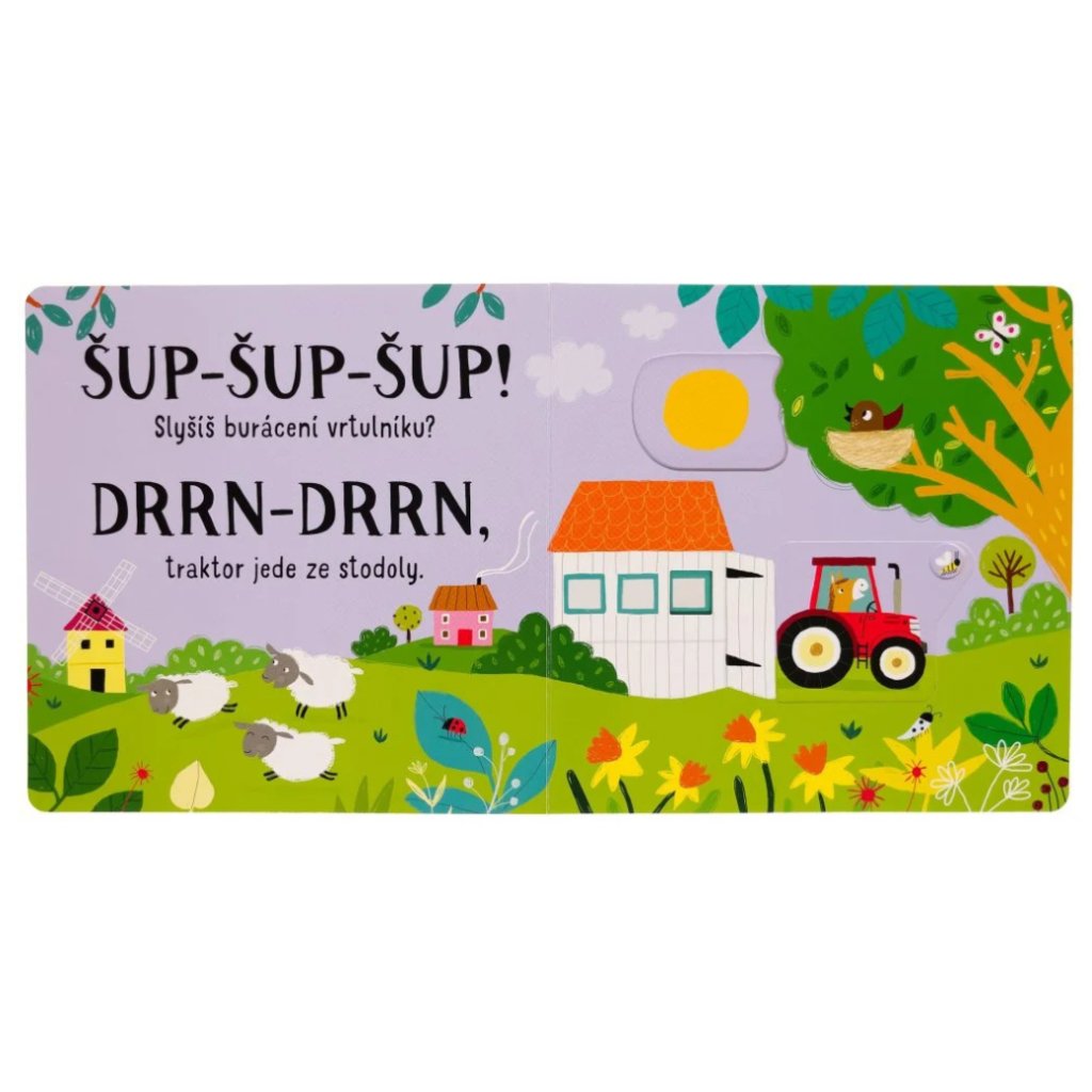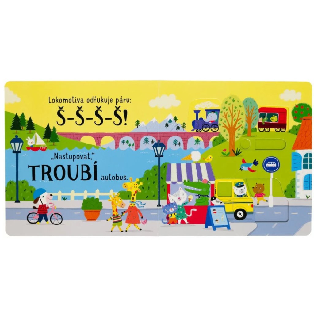 Tahle zvuková knížka s posuvnými prvky zavede děti do světa dopravních prostředků. Stačí posunout obrázek a ozve se motorka, lokomotiva, vrtulník a mnoho dalších strojů. Děti se učí rozpoznávat jednotlivé zvuky, prohlížejí obrázky a přitom si procvičují jemnou motoriku. Každé otočení stránky je malým dobrodružstvím plným rychlosti a objevů.